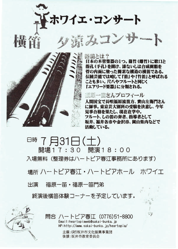 2011年8月20日(土) コンサート 福原一笛 出演決定。 (2010/12/26)