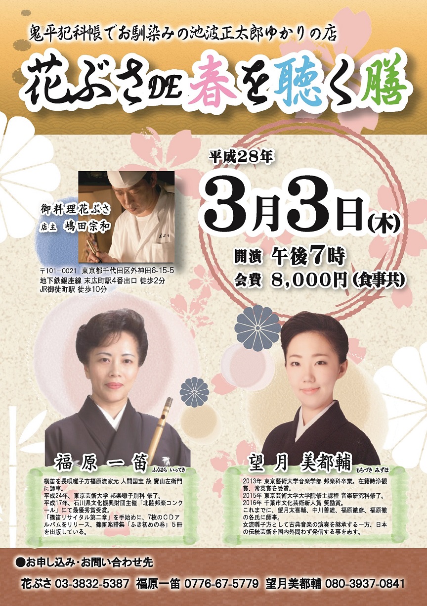 第6回 福原一笛リサイタル開催予定。(家元賛助出演)