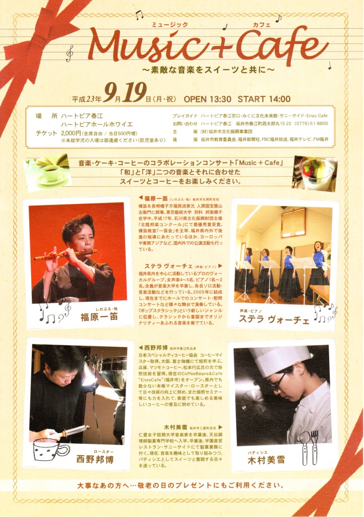 Music+Cafe〜素敵な音楽をスイーツと共に〜:ハートピア春江 ホワイエコンサート