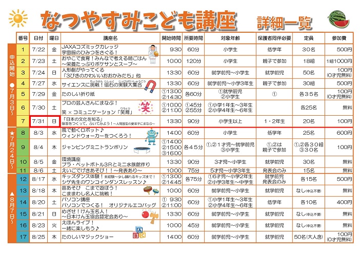 ◎日程 平成29年4月〜9月日曜日(全8回)