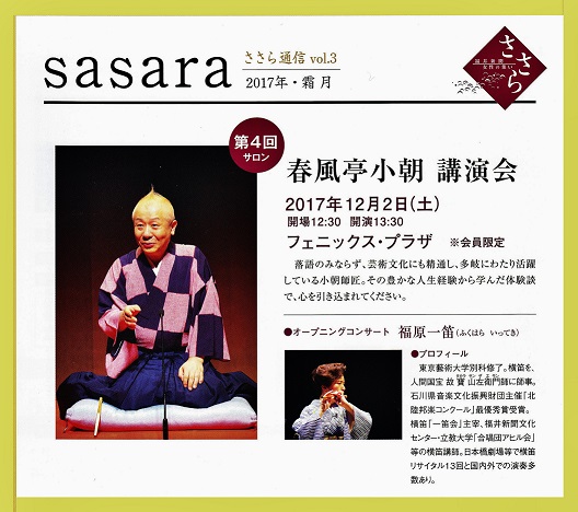 春風亭小朝 講演会 オープニングコンサート 出演決定