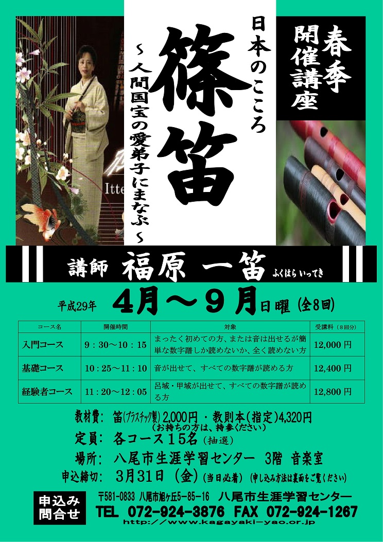 篠笛 春季開催講座 八尾市にて開講決定!